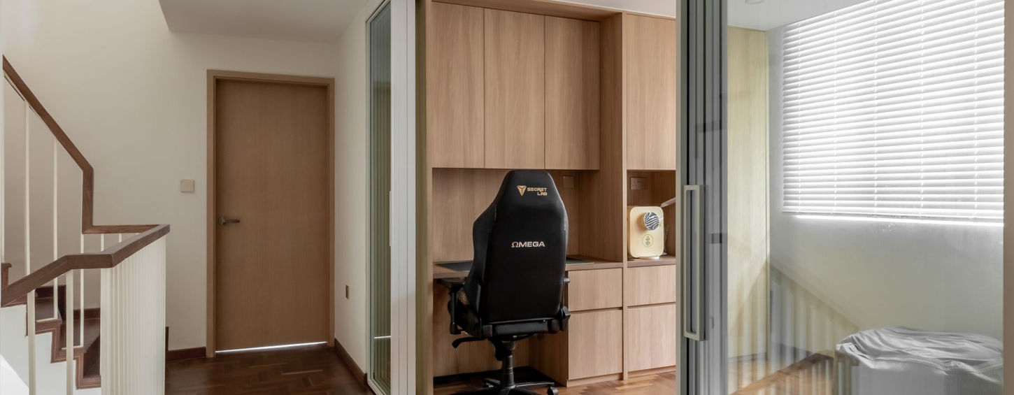 This corner terrace, originally built in the 1980s, was refreshed to serve a modern lifestyle while respecting its existing structure. The bathroom and guest room were thoughtfully relocated to improve flow, and a powder room was added on the first level for convenience. A newly constructed 14-metre swimming pool now anchors the home, introducing leisure and luxury that complement the architecture and enhance everyday living.
